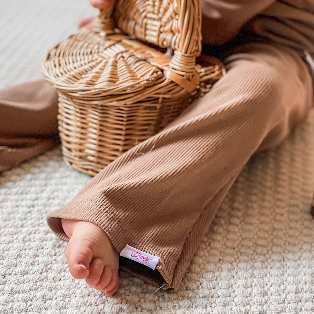 Handgemaakte effen camel flared broek voor meisjes in maat 56 t/m 140